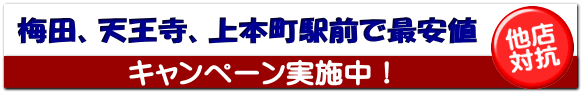 - 梅田駅前、天王寺駅前、上本町駅前、京橋駅前のエリア最安値に料金設定